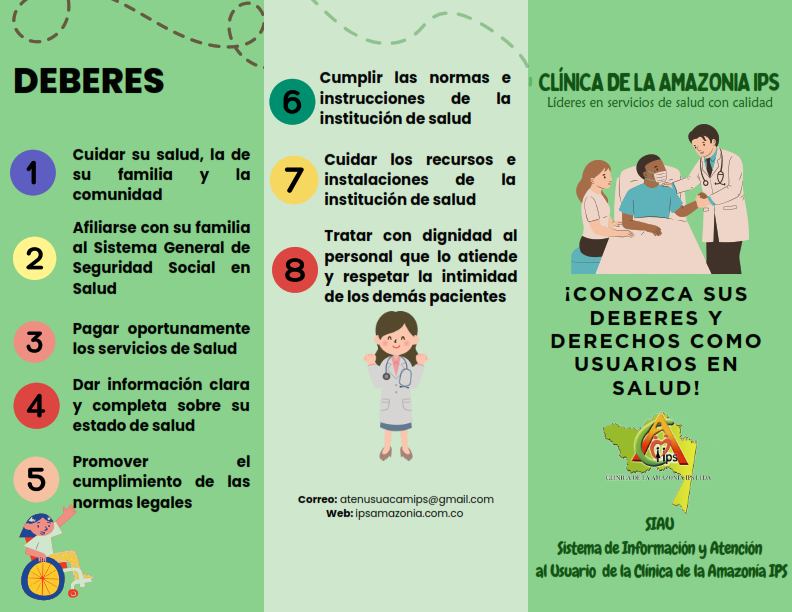 En Clínica de la Amazonia Ips Ltda, trabajamos cada día para ofrecerte una atención de salud segura, respetuosa y de calidad. Sin embargo, este compromiso requiere también de la participación activa y responsable de nuestros usuarios.