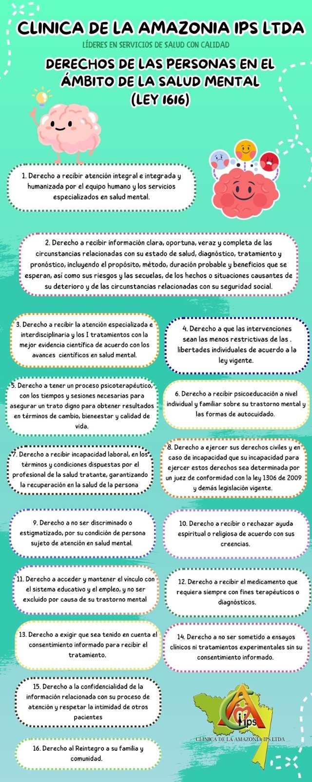 En Clínica de la Amazonia Ips Ltda, reconocemos que toda persona tiene derecho a recibir una atención en salud con dignidad, respeto y calidad. Por ello, promovemos el conocimiento y ejercicio de los derechos de nuestros usuarios, como base fundamental para una atención humana, segura y centrada en el paciente.